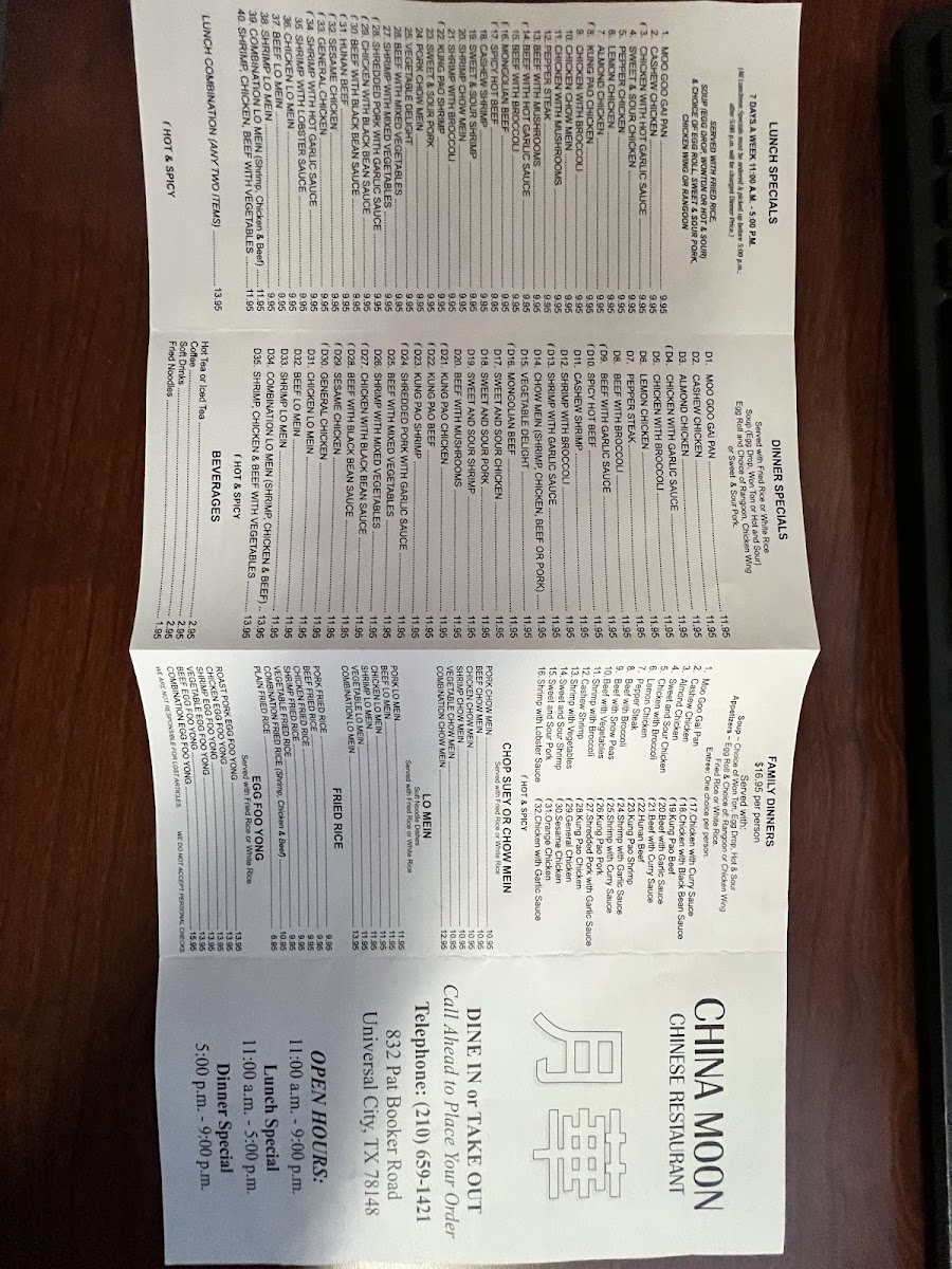 Whether you're grabbing dinner for the family or enjoying a late-night meal, China Moon offers comfort food that warms the soul. Don't miss out on this gem!